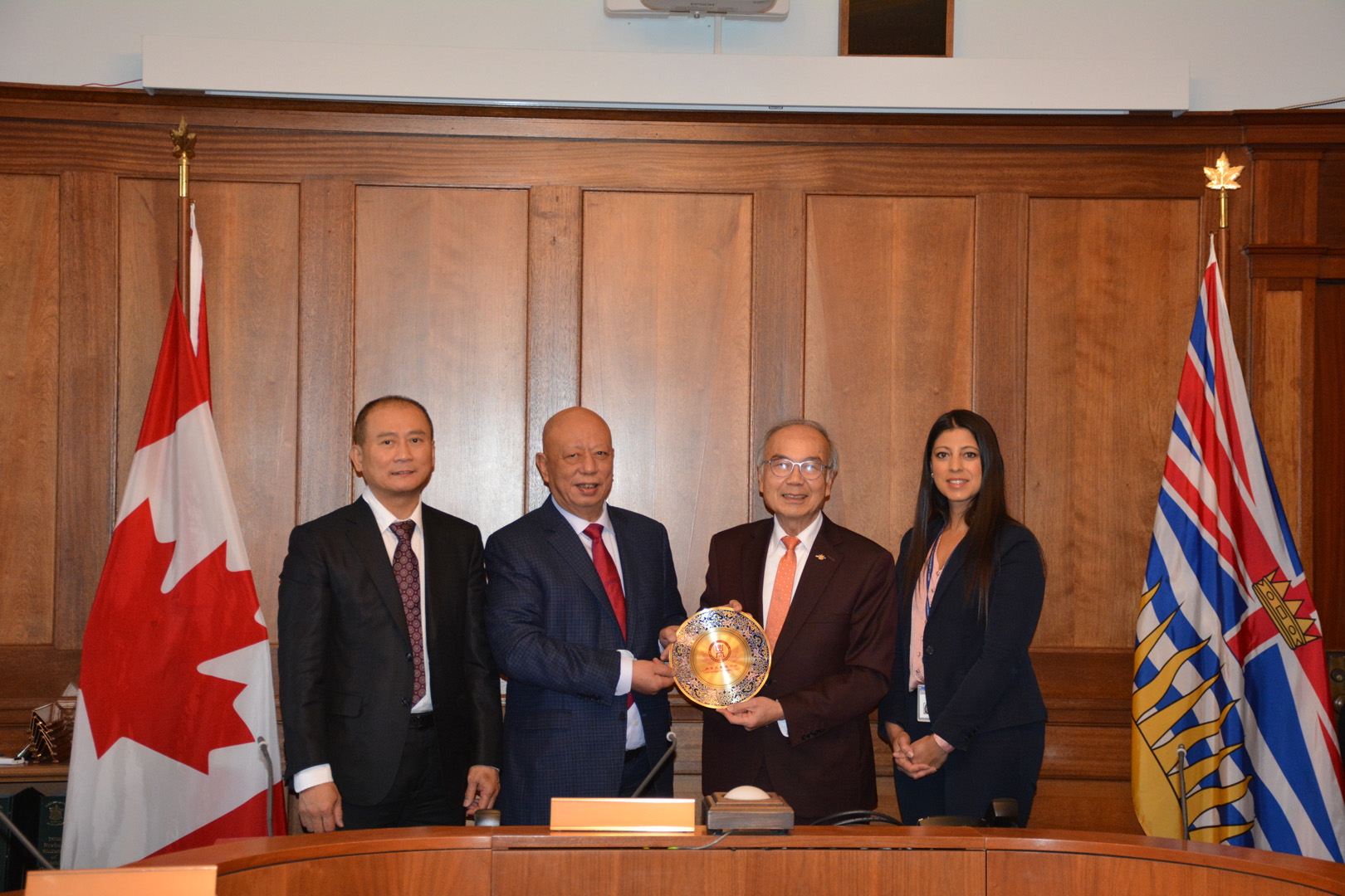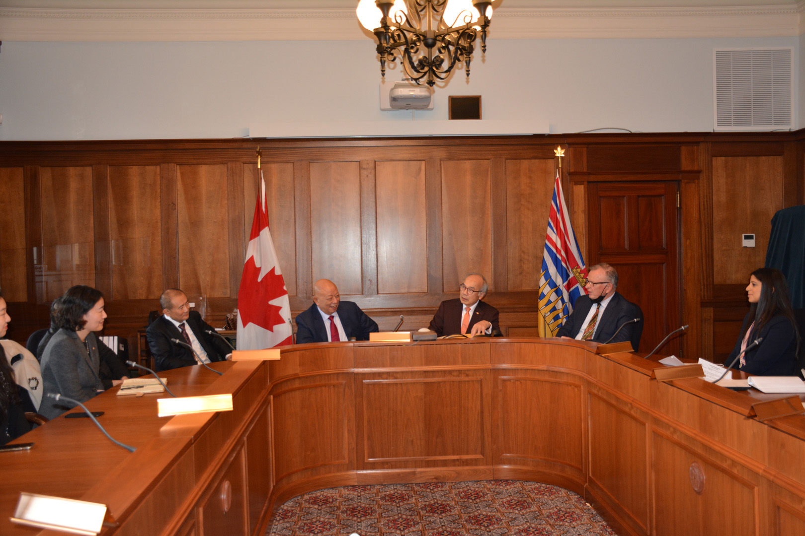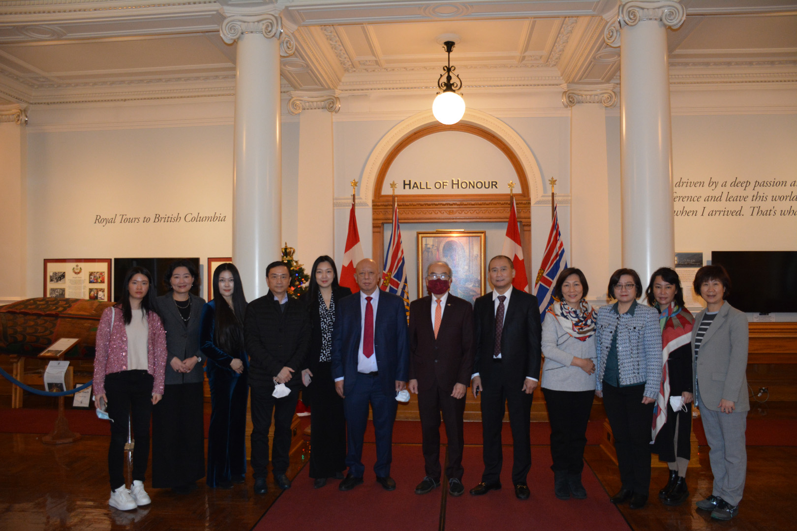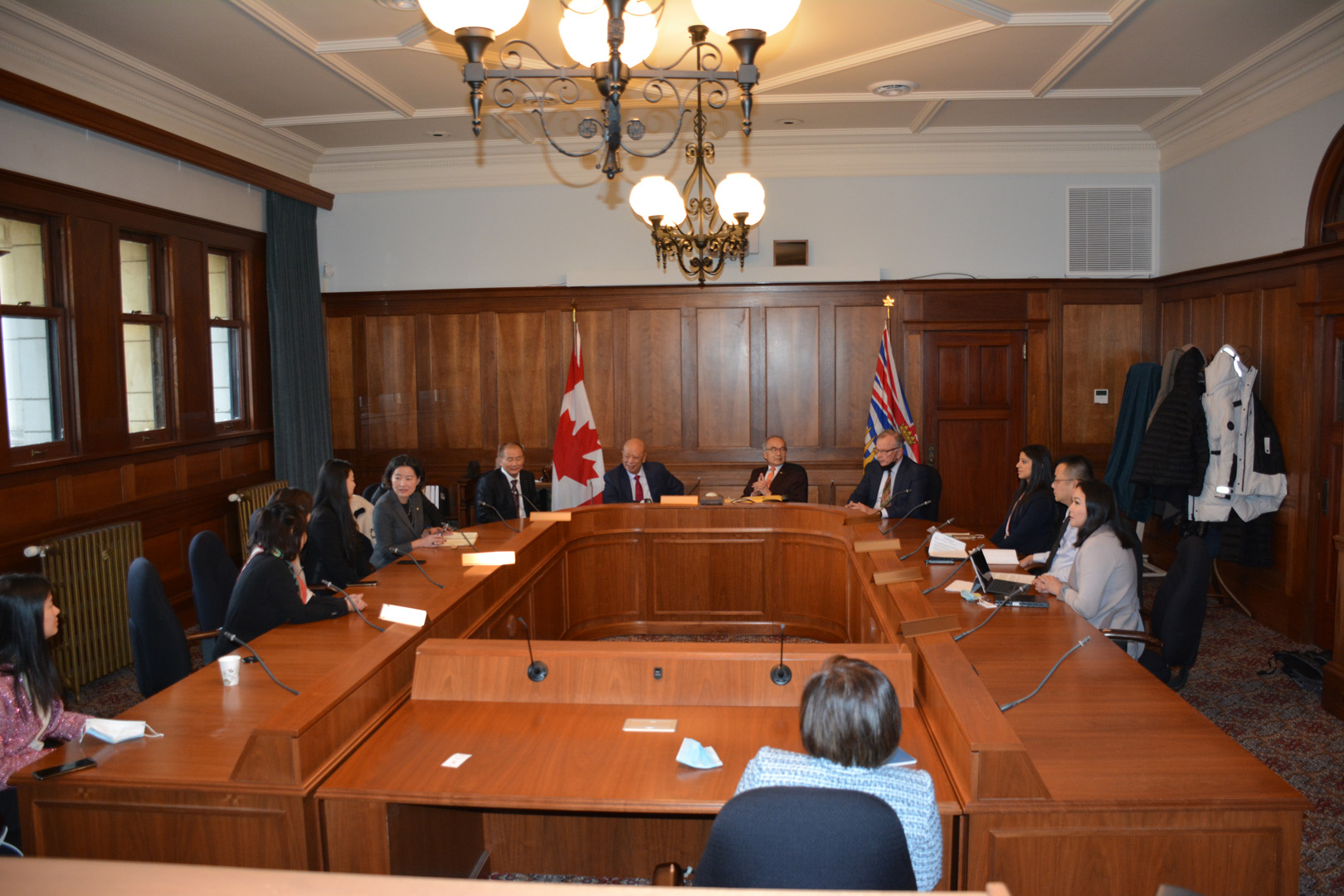 11月22日,加拿大粤商总会代表团在林少毅会长、陈育昭理事长的带领下,前往维多利亚省议会大厦,拜访卑诗省就业经济复苏与创新厅,受到贸易省务厅周炯华厅长、卑诗省能源矿产低碳创新厅厅长 Bruce Ralston, 贸易行业发展部副厅长Selena Basi等热情接待。