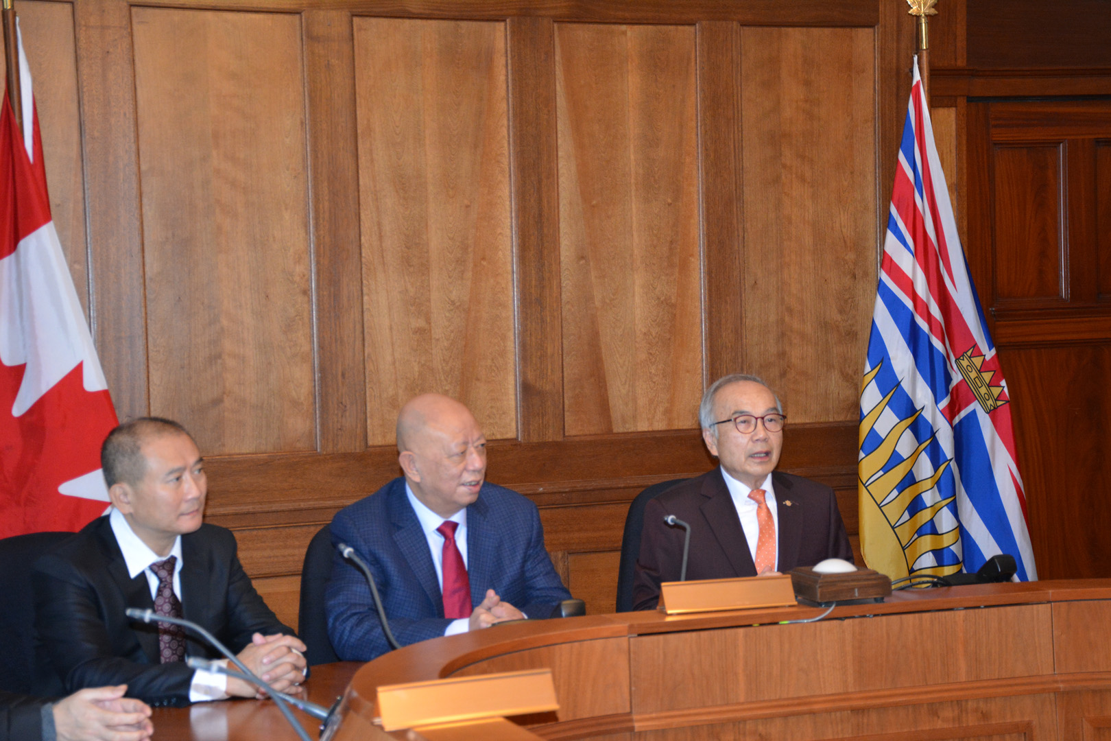 我会林少毅会长介绍了加拿大粤商总会的情况,他说:粤商总会是一家立足于加国、在本地发展的非牟利机构,会员涵盖进出口贸易、金融、科技、农产品、教育等多个行业,我们许多会员企业都是在加拿大运营的中小型企业,在亚洲及中国有广泛的贸易往来及优势,林会长表示:我们希望为加拿大各类产品出口到亚洲及中国市场起到促进作用,同时希望与卑诗贸易厅提供更多的加拿大产品出口信息给本商会,加强交流。