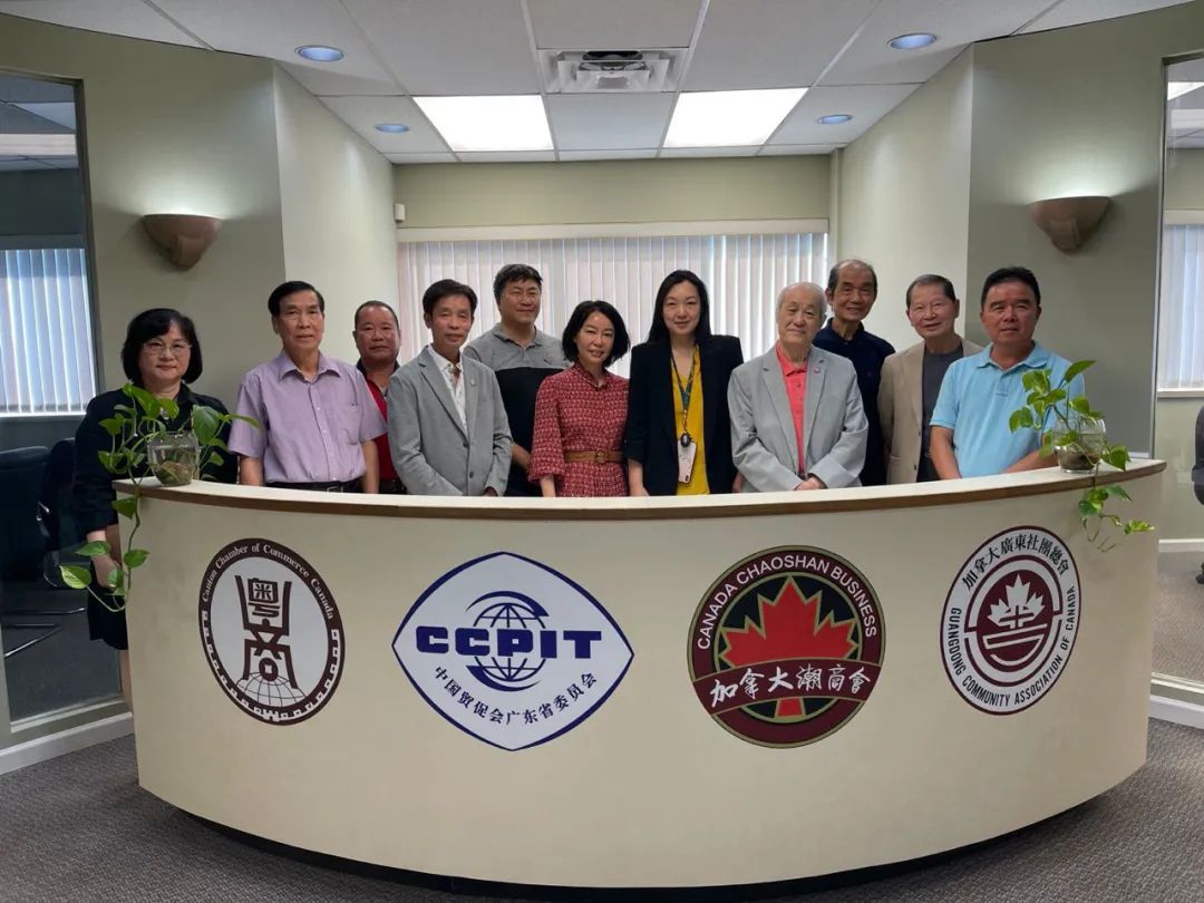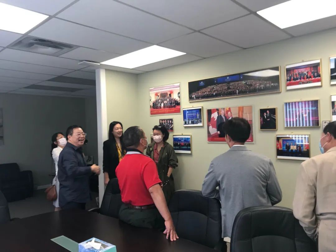 2021年7月26日, 加拿大莞商联合会及温哥华顺德商会两会一行十人访问加拿大粤商总会,加拿大广东社团总会,加拿大潮商会三会联合办公会所。