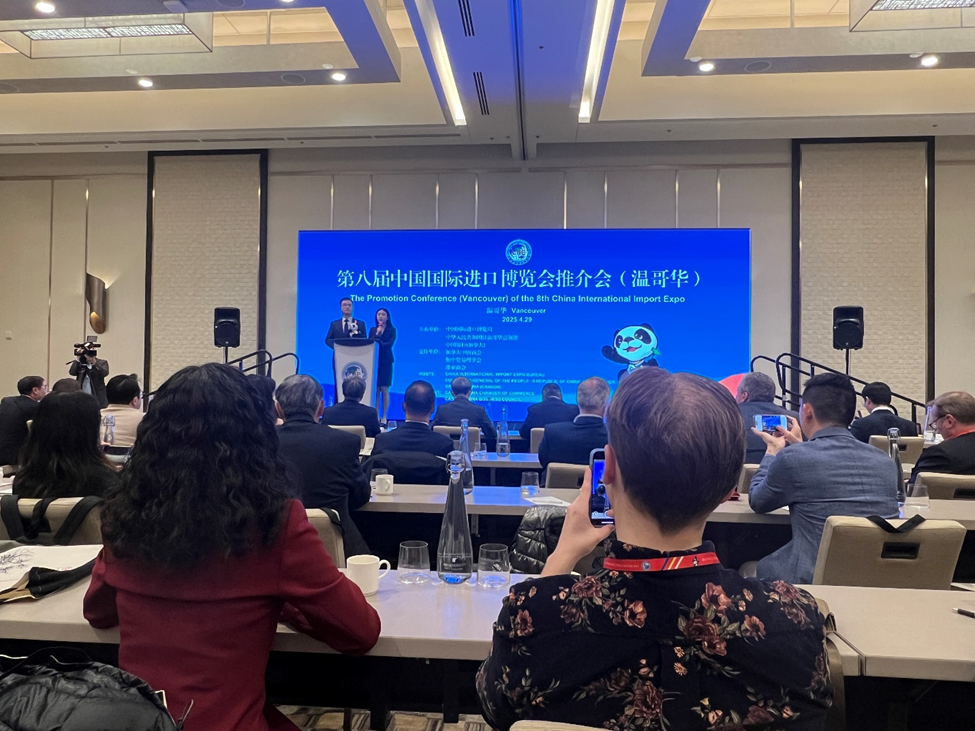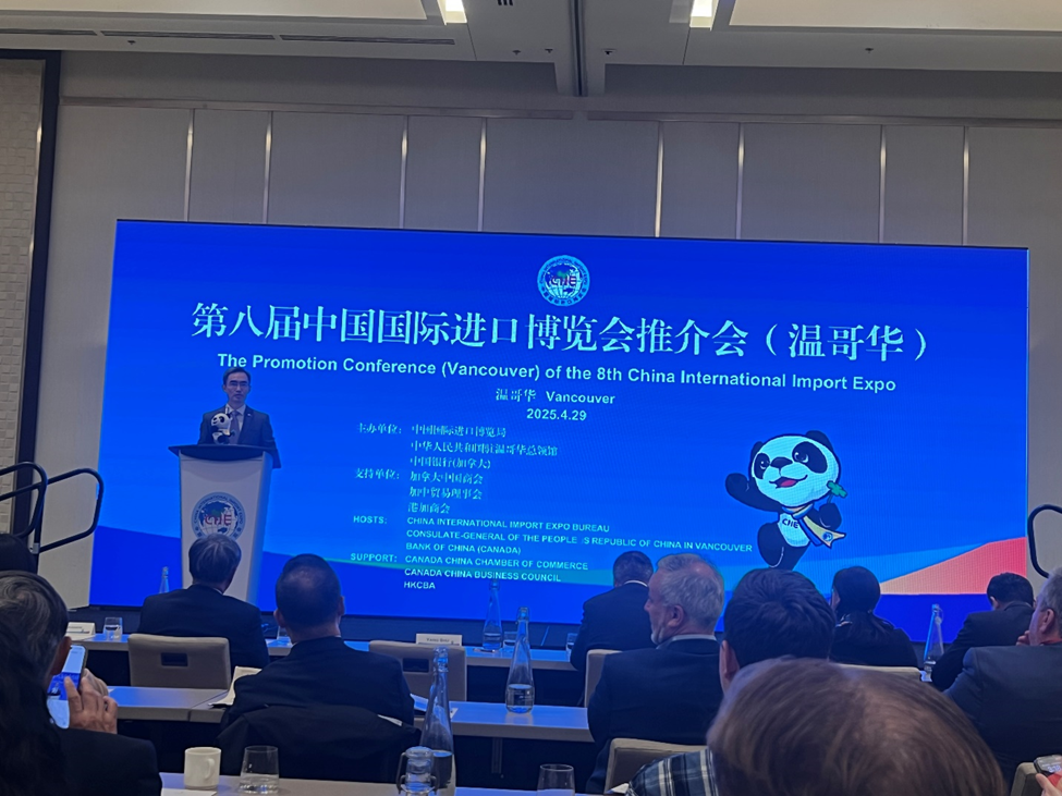 中國駐溫哥華總領事楊舒、加拿大中國銀行行長鄧軍和加拿大BC省喬治王子城市長余星友分別在推介會上致辭。中國國際進口博覽會作為全球經貿交流的重要平台,一直致力於促進國際貿易與合作。第八屆進口博覽會將2025年11月5日至10日在上海國家會展中心舉辦。此次推介會來到溫哥華,旨在向當地企業深入介紹進口博覽會的相關情況,吸引更多加拿大優質企業參展。通過這一平台,加拿大企業可以更好地了解中國市場,拓展業務,同時也有助於中國企業接觸到更多優質的加拿大產品與服務。
