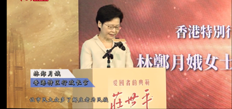林鄭月娥說,莊老一生忠心為國,愛崗愛鄉。他早年從事金融業,是香港銀行界的翹楚。他曾經出任全國人大代表、全國政協常委等重要的公職,參與國事。他也是香港特區第一屆政府推選委員會的委員,在香港回歸祖國的過程中做出重大的貢獻,為香港社會的繁榮穩定奠下了穩固的基礎。他熱心公益,在家鄉建校辦學,又為香港的僑胞提供支援,深受愛戴。莊老是潮籍人士的驕傲,更是愛國者的典範,即使已經離開了我們十多年,我們仍然十分懷念他。