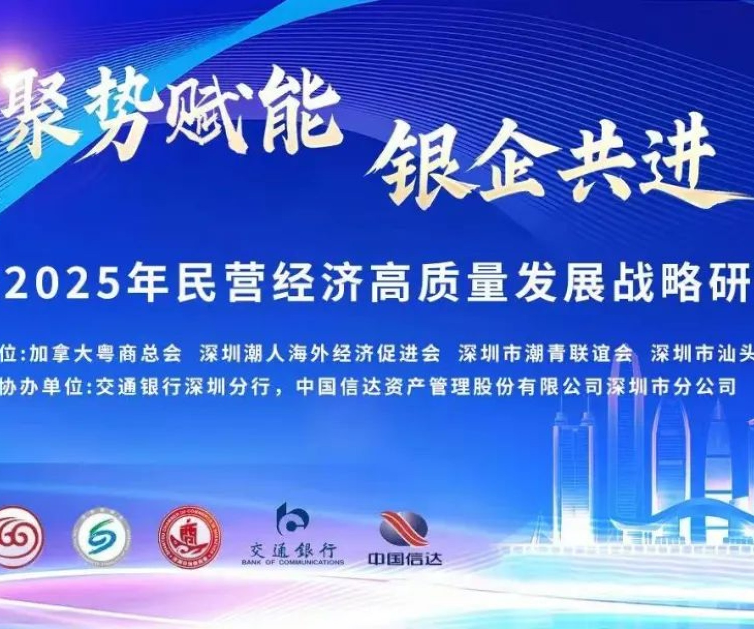 2025年3月10日,由加拿大粤商总会、深圳市汕头商会、深圳潮人海外经济促进会、深圳市潮青联谊会联合主办,交通银行股份有限公司深圳分行、中国信达资产管理股份有限公司深圳分公司协办的“聚势赋能、银企共进——聚焦2025年民营经济高质量发展战略研讨会”在交通银行大厦隆重举行。 主协办单位领导及嘉宾近150人出席了研讨会。会议紧扣2025 年民营经济发展政策导向,围绕金融服务创新与产业升级需求,构建银企精准对接机制。通过"金融 + 产业 + 政策"融合模式,为企业转型升级提供全周期支持,探索困境资产盘活路径,促成多方战略合作。活动现场实现金融资源与民营企业需求的高效匹配,推动资源共享与产融协同,为实体经济高质量发展注入新动能。 加拿大粤商总会共同会长兼理事长赵财强 赵财强会长在研讨会上致辞,高度评价交通银行对企业家群体的长期支持与高品质服务。他指出,此次研讨会为商会企业家与金融机构搭建了直接对话平台,有助于金融机构深入了解民企需求,为未来深化合作奠定基础。赵财强强调,当前经济下行压力下,民营企业面临困境,但随着新政策的实施,金融机构加大支持力度,为民企渡过难关提供助力。他期待通过本次座谈会的深入交流,为企业家带来实质性帮助,并感谢交通银行等机构对民企的持续支持,呼吁未来开展更多务实合作。 交通银行深圳分行党委书记、行长江洲,中国信达资产管理有限公司深圳分公司总经理邹劲松,深圳潮人海外经济促进会会长周南,深圳市汕头商会会长郑基明和深圳市潮青联谊会主席陈君尧也分别在研讨会上致辞。 交通银行深圳分行党委书记、行长江洲 中国信达资产管理有限公司深圳分公司总经理邹劲松 深圳潮人海外经济促进会会长周南 深圳市潮青联谊会主席陈君尧 深圳市汕头商会会长郑基明 研讨会上,交通银行深圳分行与信达资产深圳分公司分别与加拿大粤商总会、深圳市汕头商会、深圳潮人海外经济促进会、深圳市潮青联谊会签署《战略合作协议》。加拿大粤商总会常务副会长苏文龙代表进行签约仪式。此次签约标志着金融机构与商会建立紧密合作关系,通过资源共享、优势互补,共同探索盘活困境资产新模式,助力企业纾困并注入发展新动力,开启银企协同发展新篇章。 协议签署搭建起银企高质量发展桥梁,既是资本与创新智慧的深度融合,也是社会责任与发展担当的同频共振。各方将以签约为起点,通过金融活水精准支持创新与产业升级,共同谱写民营经济提质增效的时代篇章。此次合作不仅巩固商业伙伴关系,更将银企双方凝聚为中国式现代化建设的命运共同体,期待在构建新发展格局中续写更大荣光。