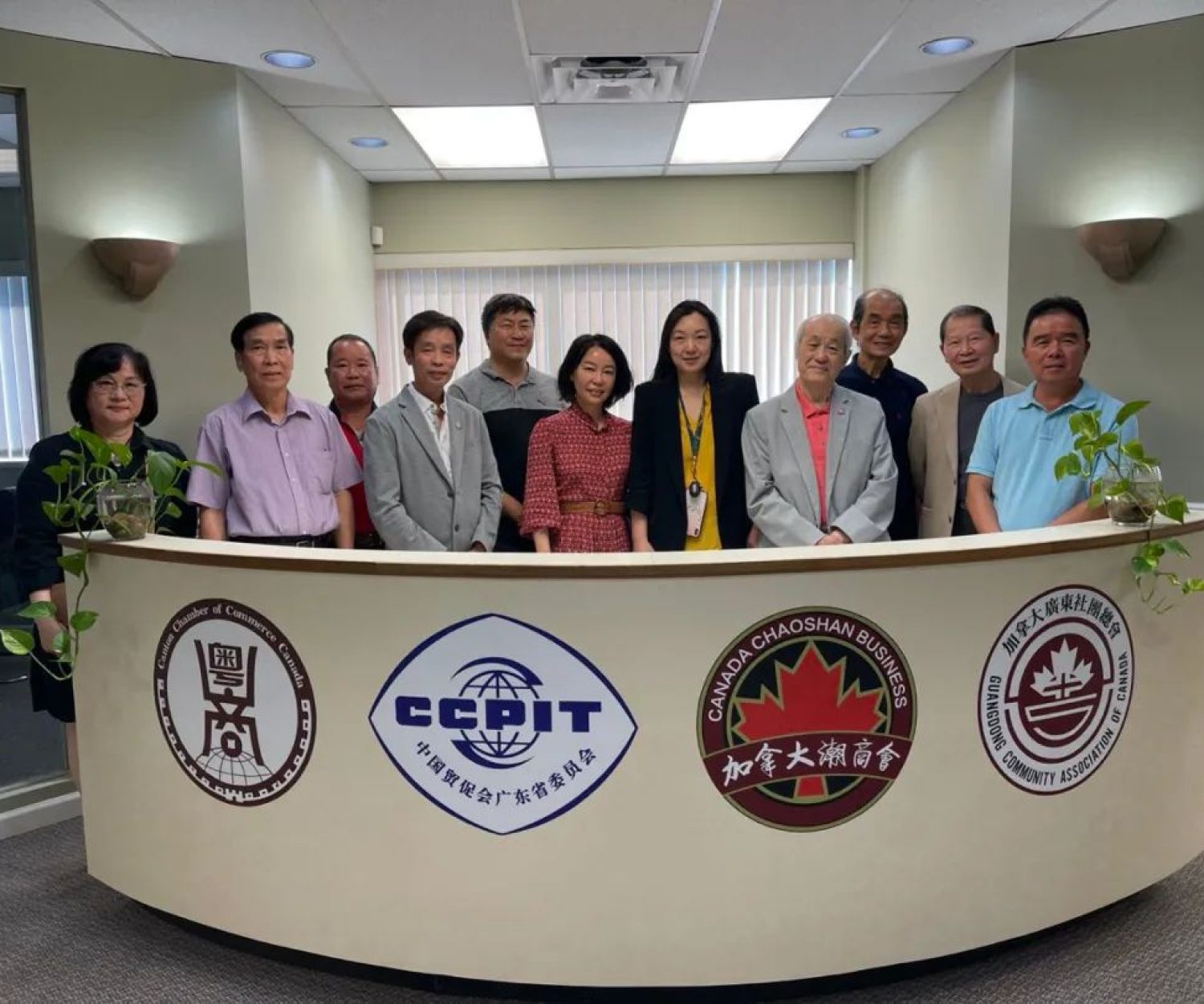 加拿大莞商联合会及温哥华顺德商会两会代表访问加拿大粤商总会,加拿大广东社团总会,加拿大潮商会三会联合办公会所
